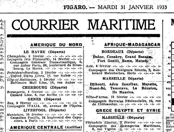 Le service du courrier paquebot était assuré par un bureau de poste à la gare Saint-Lazare, d'où partaient les trains spéciaux pour le Havre et Cherbourg, moyennant une surtaxe de 25 centimes :