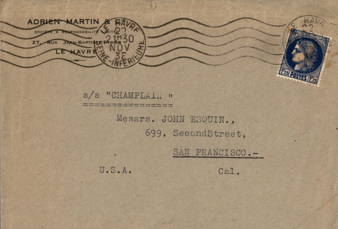 Mais il existe de précieux témoins de l'époque, d'authentiques passagers du liner : des plis acheminés jusqu'à New-York.