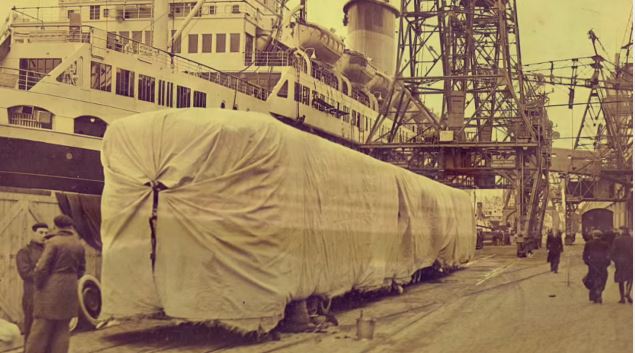 Voilà qui n'est pas commun : on a connu un avion embarqué à l'arrière du paquebot Ile de France, voici à présent un... autorail sur le Champlain !