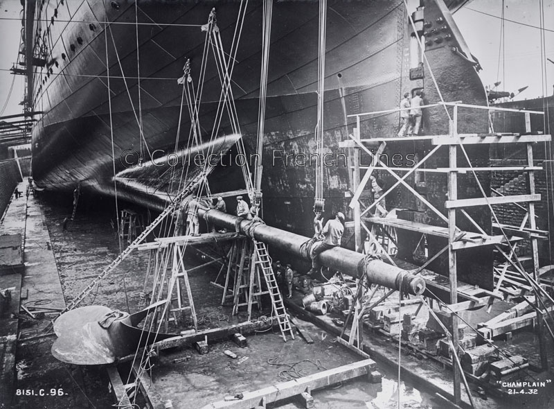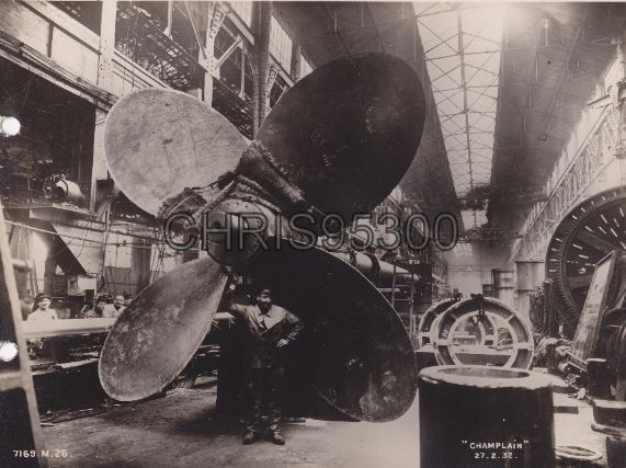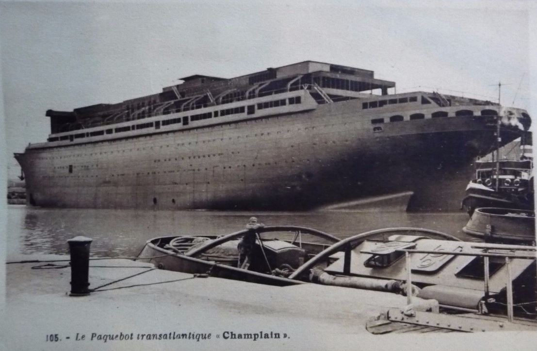 C'est aux Chantiers de Penhoët (futurs Chantiers de l'Atlantique) qu'est posée et rivetée la première tôle, en 1931, mais par retard du versement des crédits-alloués par le gouvernement français, le CHAMPLAIN n'est achevé qu'en 1932.