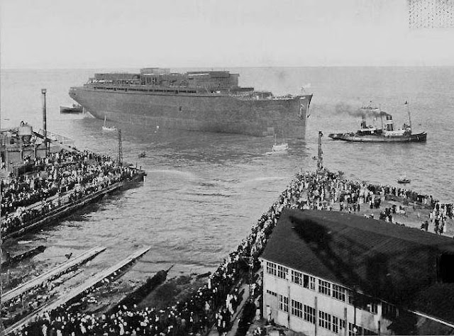 Déjà handicapée au sortir de la première guerre mondiale, la crise économique de 1929 impose une nouvelle politique de développement aux armateurs. Il faut réduire les consommations sans trop désavantager les services, la vitesse de traversée en priorité (le trophée du Ruban-bleu n'étant pas l'objectif recherché) mais d'abord et surtout, réviser complétement la philosophie de l'offre face à la demande. Dépassé le temps de la clientèle riche en 1° classe et des émigrés quasiment à fond de cales. Ce sont les anglais qui les premiers imaginent (encore eux) la contraction des 3 classes traditionnelles en 2 classes, la "touriste" (ex 1° et 2°), la 3°, dénommée désormais "passagers", est maintenue et légèrement améliorée, spartiate tout-de-même. Ils lancent donc une série de "cunarders", CARENTHIA, FRANCONIA, LACONIA, SAMARIA et SCYTHIA. Tous font environ 20.000 tonnes en moyenne, traversent l'Atlantique en 7 jours (au départ de Liverpool). Les français suivent, la Compagnie-Générale-Transatlantique elle, met en œuvre ses "cabin-ships" (sans pour autant renoncer à un minimum de luxe et un maximum de confort) : c'est l'heure du DE GRASSE, du LAFAYETTE, du COLOMBIE et du... CHAMPLAIN ! De tous, anglais et français, ce dernier sera le plus rapide et le plus luxueux. Il établira, dans sa catégorie un record jamais égalé par ses concurrents: traversée de l'Atlantique en 6 jours, 16 heures et 20 minutes.